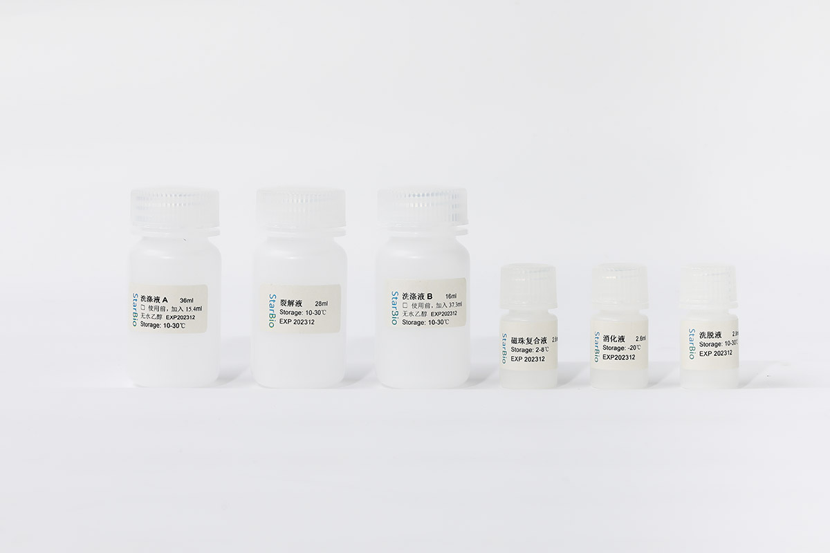 Starvio血液核酸磁珠法提取試劑盒是我公司研發(fā)的專門(mén)用于較大量血液樣本(0.5ML)總核酸包括DNA和RNA提取的試劑盒。試劑盒采用獨(dú)特的裂解液配方,可快速?gòu)氐琢呀饧t細(xì)胞、白細(xì)胞以及轉(zhuǎn)移的腫瘤細(xì)胞和感染的微生物菌體,直接從全血中提取血細(xì)胞、腫瘤細(xì)胞、感染細(xì)菌和病毒的總核酸。試劑盒采用我們自己研發(fā)的改性硅基磁珠,核酸吸附能力強(qiáng),可顯著提升血液樣本核酸的提取得率。與部分同類(lèi)試劑盒相比,提取得到的總核酸產(chǎn)量更大,純度更高,有效地去除了血紅蛋白、色素、脂類(lèi)等雜質(zhì)污染,可以直接應(yīng)用于核酸 雜交、PCR、RT-PCR、定量PCR等各種分子檢測(cè),適用于血液微生物的PCR檢測(cè)、基因檢測(cè)和腫瘤檢測(cè)等,包括人類(lèi)的血液病、白血病、惡性腫瘤、肝炎、艾滋病、菌血癥、敗血癥、膿毒血癥等的檢測(cè)以及非洲豬瘟、雞新城疫、牛白血病等家畜類(lèi)疾病的診斷檢測(cè)。