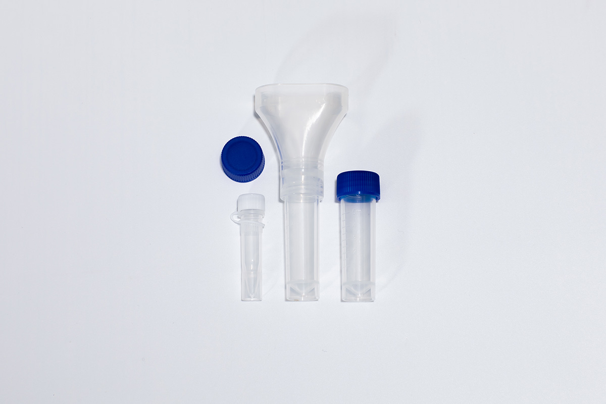 本產(chǎn)品由收集漏斗、收集管和收集管帽組成。其中在漏斗蓋內(nèi)有塑封膜封存的細(xì)胞保存液,該液體與唾液混合后可長(zhǎng)時(shí)間在室溫下保存,唾液樣本核酸不受破壞。底座部分為唾液收集管,儲(chǔ)存2毫升唾液。收集完畢后按下漏斗蓋,便可使唾液與保存液混合。再將收集管的小蓋子蓋上,旋緊搖勻即可。