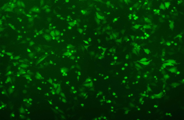 圖AStarvio質(zhì)粒DNA轉(zhuǎn)染試劑 轉(zhuǎn)染0.8μgGFP質(zhì)粒于Hela細(xì)胞,轉(zhuǎn)染陽(yáng)性率高達(dá)90%