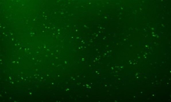 圖 Starvio巨噬細(xì)胞質(zhì)粒DNA轉(zhuǎn)染試劑轉(zhuǎn)染GFP質(zhì)粒于RAW264.7,轉(zhuǎn)染陽性率高達(dá)50%左右