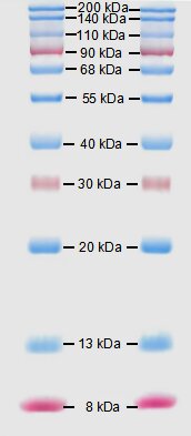 本產(chǎn)品采用星啟百代獨有的DonGel凝膠技術(shù),可在較短時間內(nèi)實現(xiàn)凝膠的快速配制,研究者不需要再計算各種成份的使用量,操作更加簡單,大幅提高了研究者的制膠效率。特別地,使用本產(chǎn)品制備的凝膠,蛋白組份分離效果更好,條帶更加清晰銳利,并且,電泳分離時間較傳統(tǒng)配方更短。本產(chǎn)品上層膠溶液B中含有染料,使蛋白點樣孔清晰呈現(xiàn),研究者加樣更加方便。該染料可在上層膠中穩(wěn)定存在,不會隨著電泳遷移,不會影響電泳和染色效果,電泳完成后更加便于識別和切除,不會影響后續(xù)實驗。本產(chǎn)品配套提供新型促凝劑,其具有更好的穩(wěn)定性,可于-20℃長期保存,4℃保存至少三個月。本產(chǎn)品制備的凝膠不含SDS,也可以用于非變性PAGE凝膠電泳。