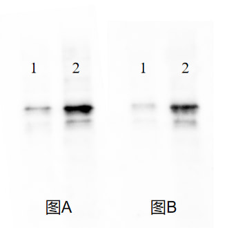 圖A為Starvio Omni飛克級ECL檢測結(jié)果,1為1μl上樣蛋白,2為5μl上樣蛋白;圖B為國內(nèi)某知名廠商飛克級ECL檢測結(jié)果,1為1μl上樣蛋白,2為5μl上樣蛋白。顯然,Starvio Omni ECL檢測的目的條帶陽性信號更明顯,顯影更清晰,靈敏度更高。