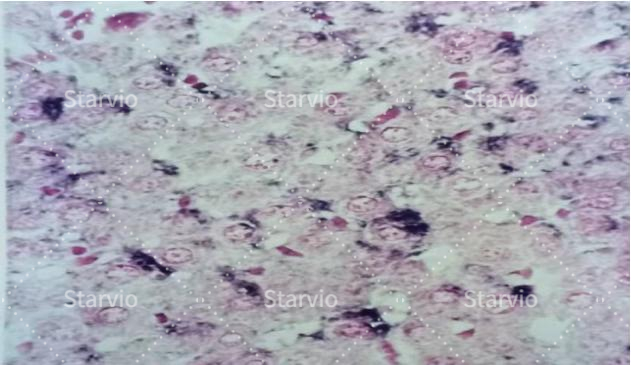 圖1. 使用地高辛標(biāo)記探針,通過Starvio原位雜交試劑盒在小鼠肝臟組織切片上進(jìn)行原位雜交,檢測其漢坦病毒感染情況。